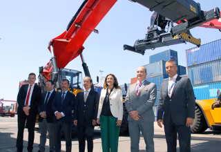 La Terminal Port Nou en el Puerto de Barcelona, perteneciente a Bergé, ha recibido este jueves tres nuevas máquinas 'reach stackers', con una capacidad de carga de 45 toneladas y que mejorarán la capacidad operativa y la eficiencia de esta terminal.