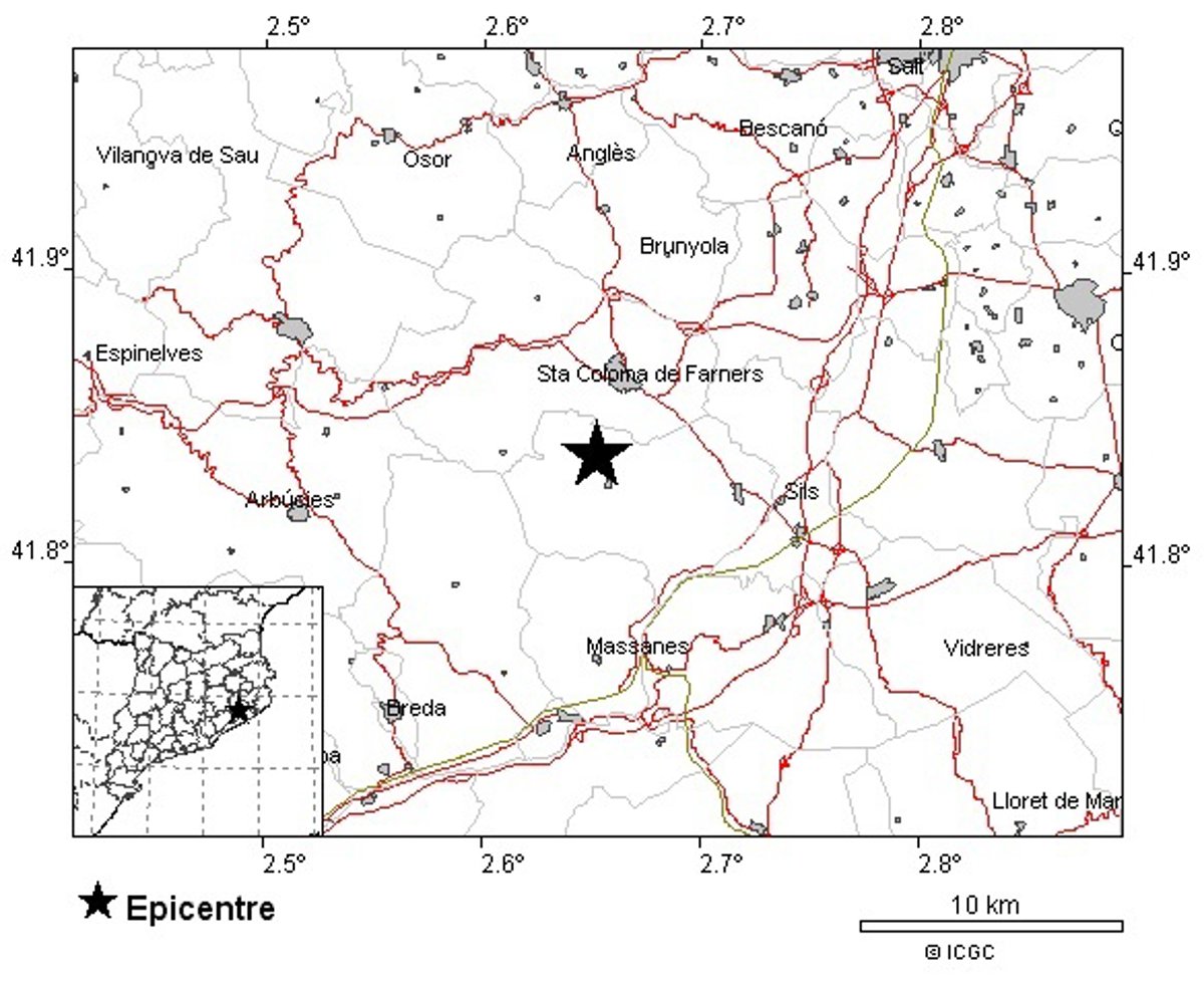 El terremoto, que según el ICGC no ha producido daños, ha ocurrido a las 03.17 horas y ha tenido su epicentro en el municipio de Riudarenes, cercano a la capital de la comarca.