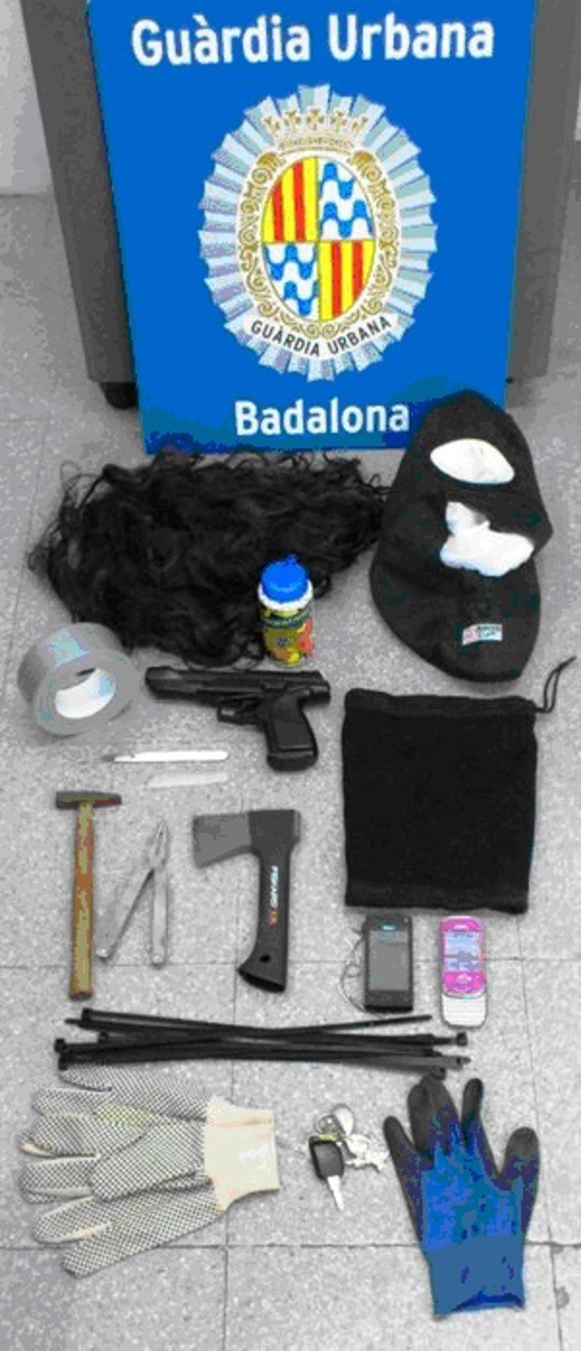 La Policía Local les requisó la pistola simulada, el bisturí, un hacha de pequeñas dimensiones, un martillo y una peluca, algunos dentro de un vehículo estacionado en el exterior.