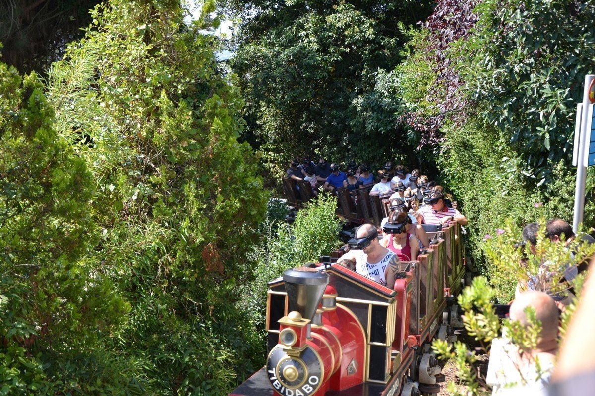 El parque de atracciones del Tibidabo ha estrenado este sábado la atracción Virtual Express, la primera que utiliza la realidad virtual en Catalunya, y que ha transformado el clásico Tibidabo Express en un tren que combina su viaje con gafas de realidad virtual.