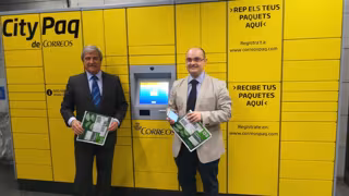 El consejero delegado de Transports Metropolitans de Barcelona (TMB), Enric Cañas, y el presidente de Correos, Javier Cuesta, han estrenado este miércoles un terminal automático de paquetería 'CityPaq' en el vestíbulo de la estación Passeig de Gràcia (L2, L3 y L4) del Metro de Barcelona, que permite recibir paquetes sin tener que pasar por la oficina.