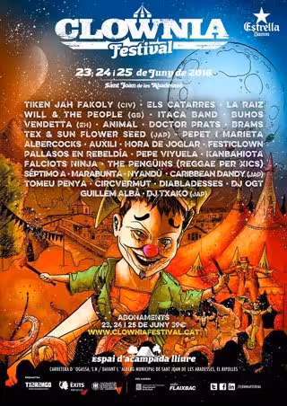 El grupo musical Txarango ha ampliado de dos a tres días la III edición de su festival Clownia, en el que músicos internacionales como el marfileño Tiken Jah Fakoly, los ingleses Will and the People y los japoneses Tex & Sun Flower Seed compartirán escenario con los autóctonos Brams, Tomeu Penya y Els Catarres entre el 23 y el 25 de junio.