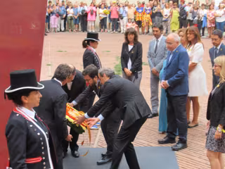 Al término del acto, Torra y los consellers han saludado a algunos de los asistentes que han acudido a este punto del barrio Gòtic y se han dirigido luego hacia el Parlament, donde continúan los actos institucionales del 11 de Septiembre.