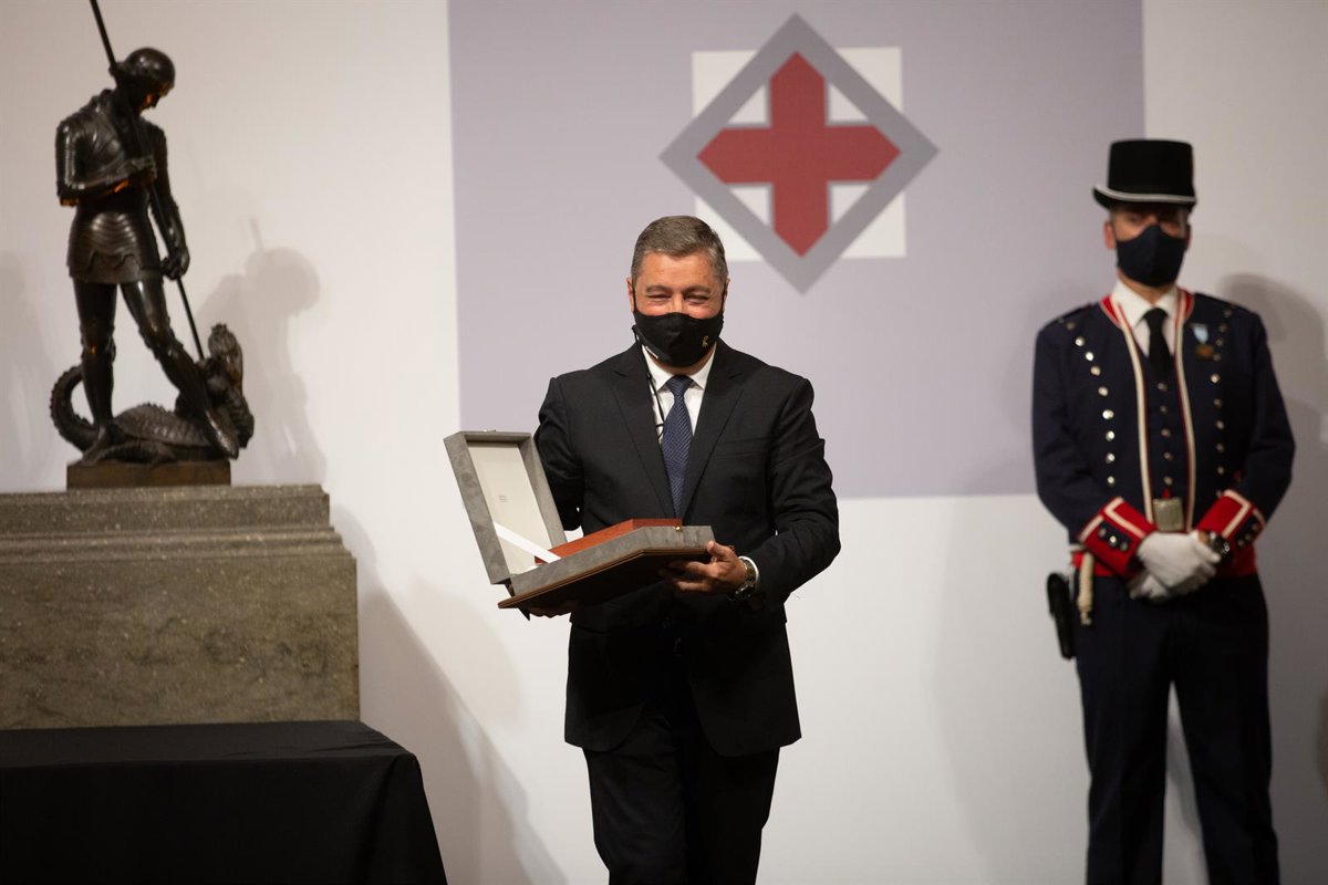 En una entrega en el Palau de la Generalitat, que se ha realizado en tres bloques por las medidas de prevención por el coronavirus, ha señalado que las Creus de Sant Jordi son "un símbolo de determinación, de resistencia y de lucha".