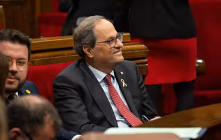 El presidente de la Generalitat, Quim Torra, sonríe desde su escaño en una sesión plenaria en el Parlamento de Cataluña. - David Zorrakino - Europa Press - Archivo