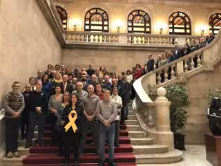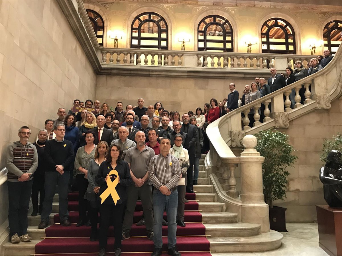 Se han concentrado en la escalinata del Parlament, una trabajadora de la Cámara ha sostenido un lazo amarillo y han acabado los diez minutos de silencio con un aplauso.