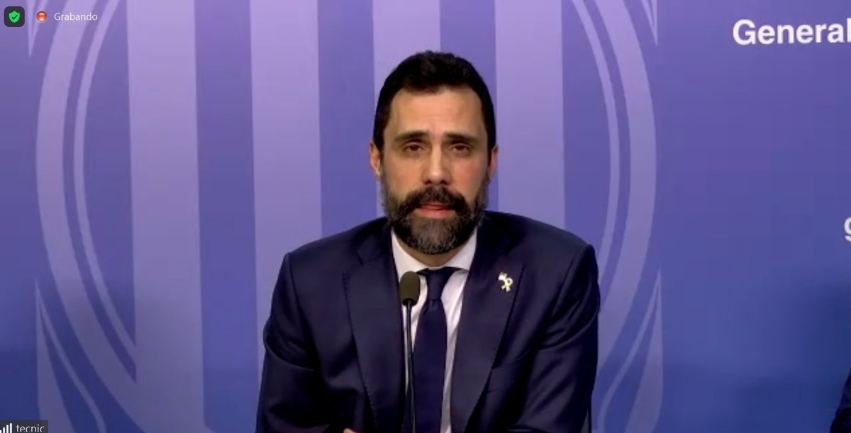 El conseller de Empresa y Trabajo de la Generalitat, Roger Torrent, en rueda de prensa telemática - GENERALITAT
