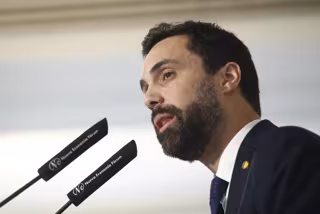 El presidente del Parlamento de Cataluña, Roger Torrent, interviene en un Desayuno Informativo del Fórum Europa en el Hotel Westin Palace de Madrid. - Eduardo Parra - Europa Press - Archivo