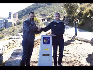 El conseller de Empresa y Trabajo de la Generalitat de Catalunya, Roger Torrent, y el Vicepresidente Primero y Consejero de Presidencia, Justicia y Turismo de la Xunta de Galicia, Alfonso Rueda, han inaugurado este sábado un punto del camino de Sant Jaume ubicado cerca del conjunto monumental de Sant Pere de Rodes (Girona).