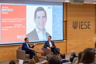 El presidente de BBVA, Carlos Torres, en el acto de IESE en Barcelona. - BBVA