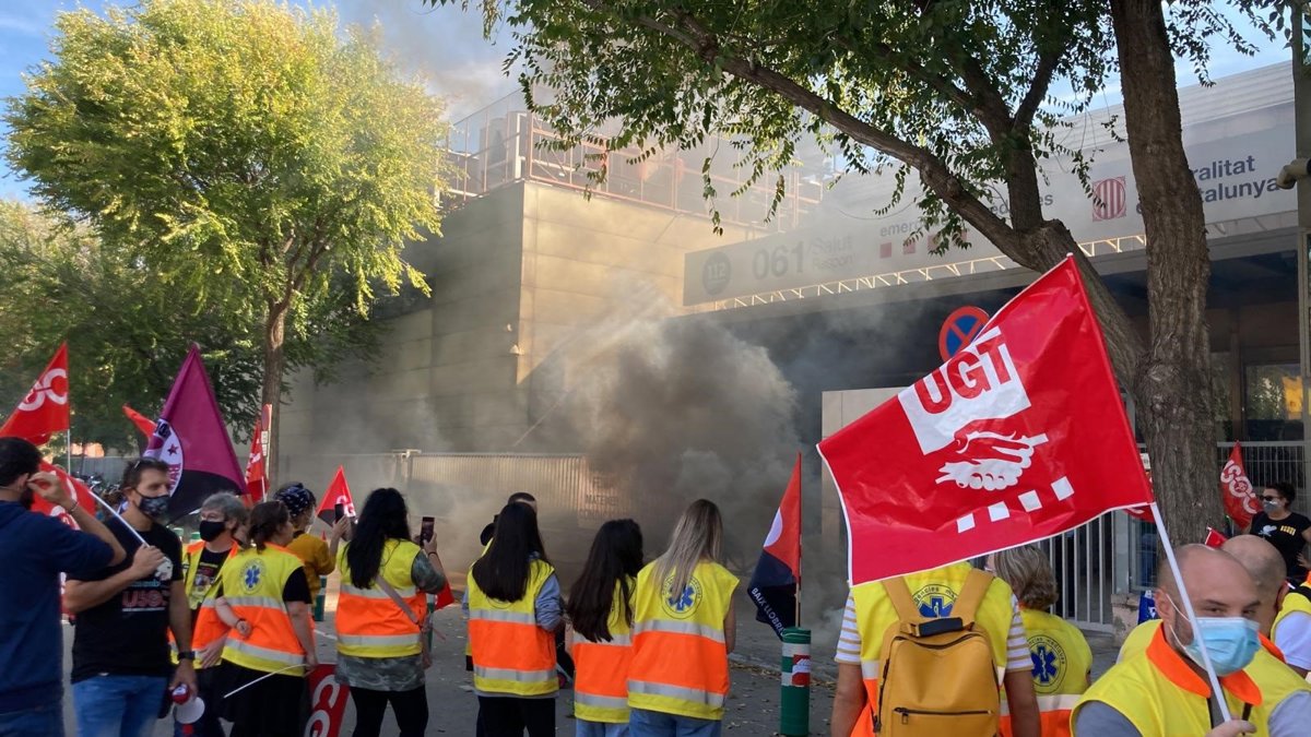 Trabajadores del 061 se manifeiestan ante la sede del Servei d'Emergncies Mdiques (SEM) en L'Hospitalet de Llobregat (Barcelona) - UGT