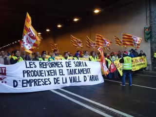 Los manifestantes han cortado durante una hora el Túnel de Vielha gritando consignas contra la decisión del Gobierno del PP que, en Aran, afectan a 40 trabajadores directos, según UGT.