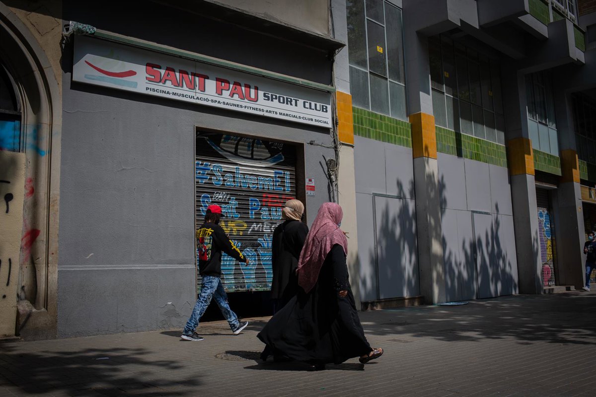 Archivo - Varias personas pasan por la puerta del gimnasio social Sant Pau para personas sin hogar, a 28 de abril de 2021, en Barcelona, Catalunya, (España). - David Zorrakino - Europa Press - Archivo