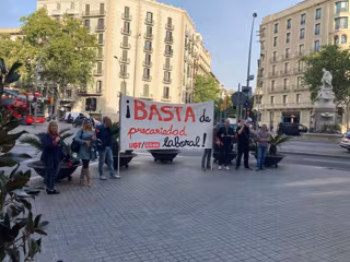 Los trabajadores reclaman mejores condiciones laborales y un incremento de la plantilla, y llevaban una pancarta que rezaba "Basta de precariedad laboral".