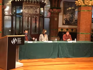 La directora artística adjunta del Palau de la Música Catalana, Mercedes Conde; el director general de la Fundació pera a Catalunya, Oscar Lancuza, y el director de los conciertos, Xavier Puig, presentan los conciertos. - EUROPA PRESS