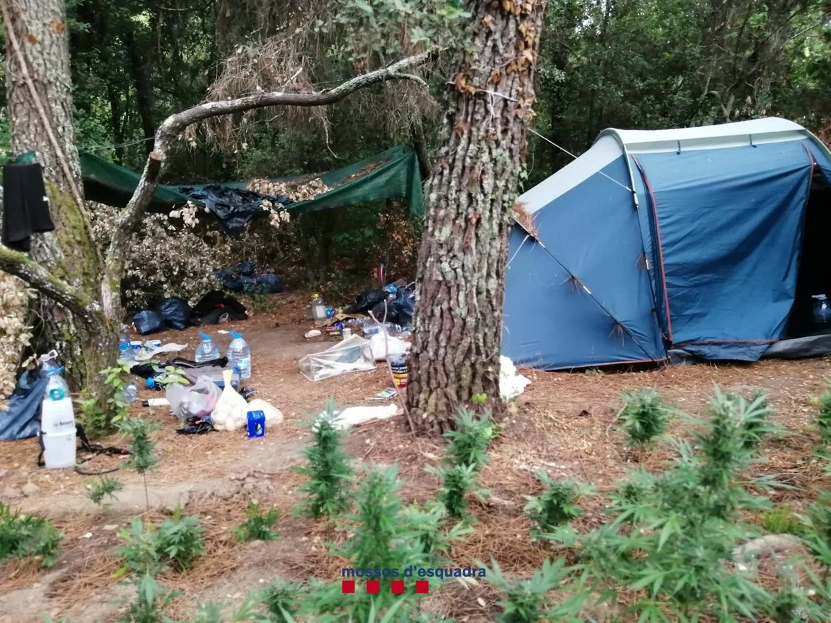 Los Mossos d'Esquadra y la Policía Local de Vidreres (Girona) han detenido a tres hombres de 19, 27 y 31 años por presuntamente cultivar 2.000 plantas de marihuana ocultas en una zona aislada y boscosa, en la montaña, y acampar al lado de la plantación causando "un gran riesgo de incendio forestal" al usar un hornillo de camping.