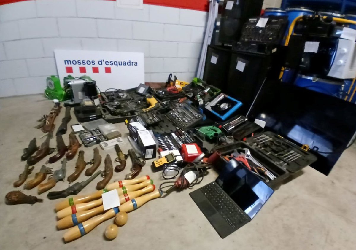 En la entrada y registro del piso ocupado, los mossos localizaron unos 40 objetos robados, entre los cuales maquinaria de construcción, joyas y electrodomésticos, así como diversas armas y aparatos para el cultivo de marihuana, por lo que fueron detenidos y el sábado pasaron a disposición judicial.