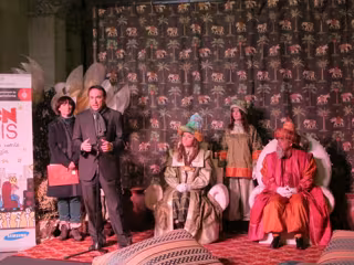 El rey Melchor ha explicado que han hecho un viaje muy largo, pasando por lugares donde no hay paz y viven niños que no pueden ir al colegio, por lo que ha pedido a los pequeños que ayuden "a quienes sufren, están solos, enfermos o no tienen trabajo".