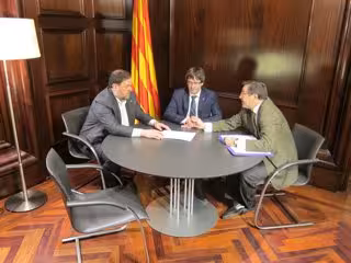Por último, el presidente y el vicepresidente del Govern, Oriol Junqueras, han salido del hemiciclo donde se estaba celebrando el pleno, y han firmado su notificación en otro despacho y en presencia de los medios de comunicación.