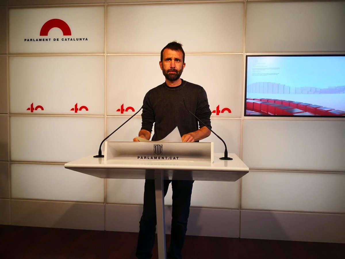 Archivo - El secretario tercero de la Mesa del Parlament y diputado de la CUP, Pau Juvill, en rueda de prensa en el Parlament - EUROPA PRESS - Archivo