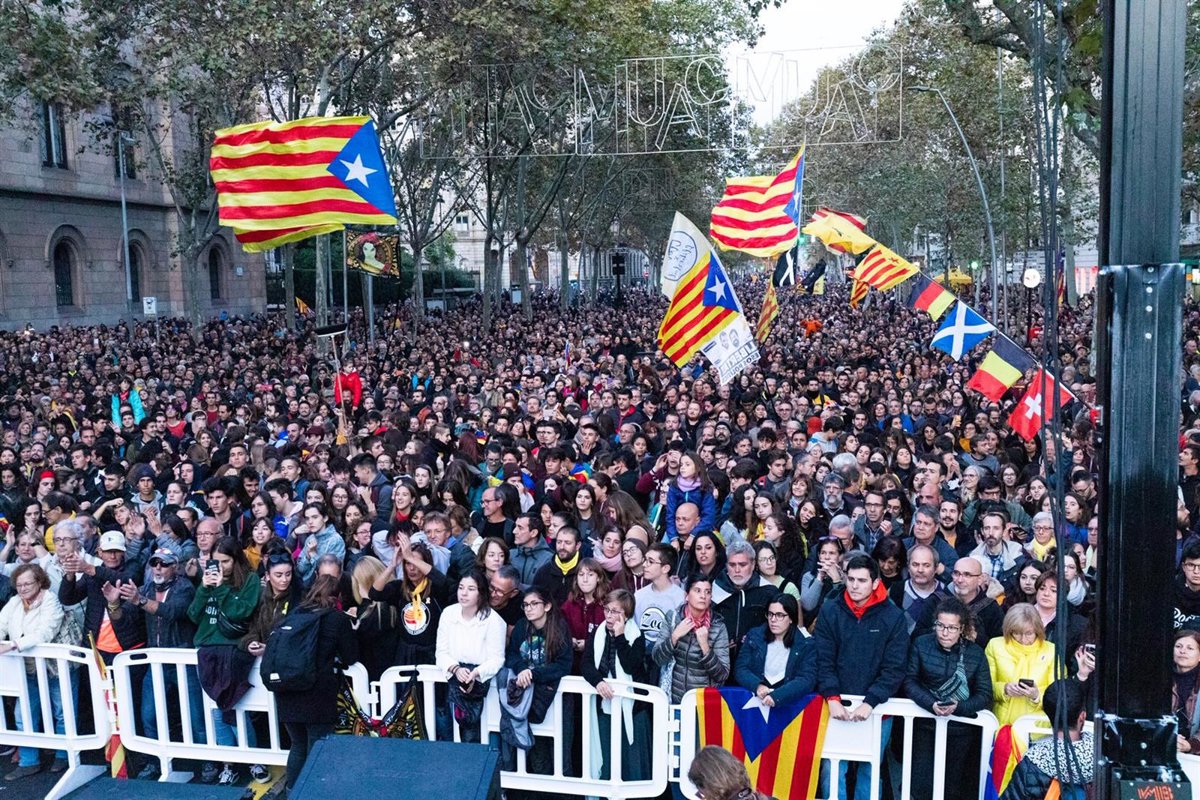 El acto más masivo se ha celebrado en Barcelona, donde los asistentes han presenciado a conciertos y han llenado de forma festiva el tramo de Gran Via que va desde la calle Balmes hasta la plaza Universitat, a pocos metros del centenar de personas que siguen acampadas.