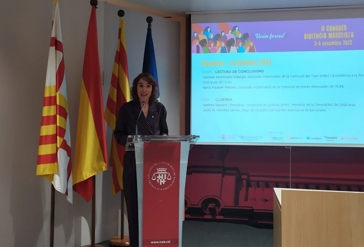 Ubasart ha agradecido al Icab que haya organizado el congreso sobre violencia machista, que empezó el jueves y ha terminado este viernes: "Estáis poniendo todo vuestro rigor técnico y jurídico al servicio del abordaje de este problema social".