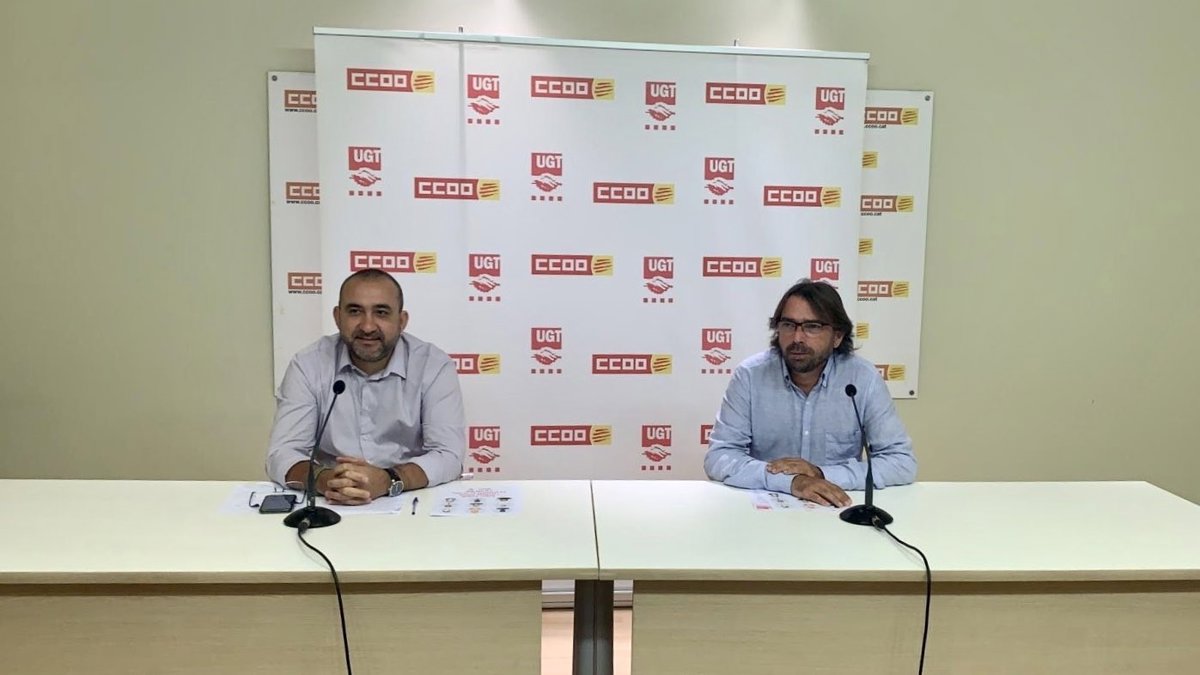 Los secretarios generales de CC.OO. Y UGT de Catalunya, Javier Pacheco y Camil Ros, este lunes - UGT TWITTER