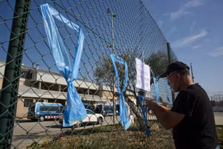 Lazos colgados en una valla durante protestas de funcionarios de prisiones ante la cárcel de Quatre Camins, a 18 de marzo de 2024, en La Roca del Valls, Barcelona, Catalunya (España). - Alberto Paredes - Europa Press