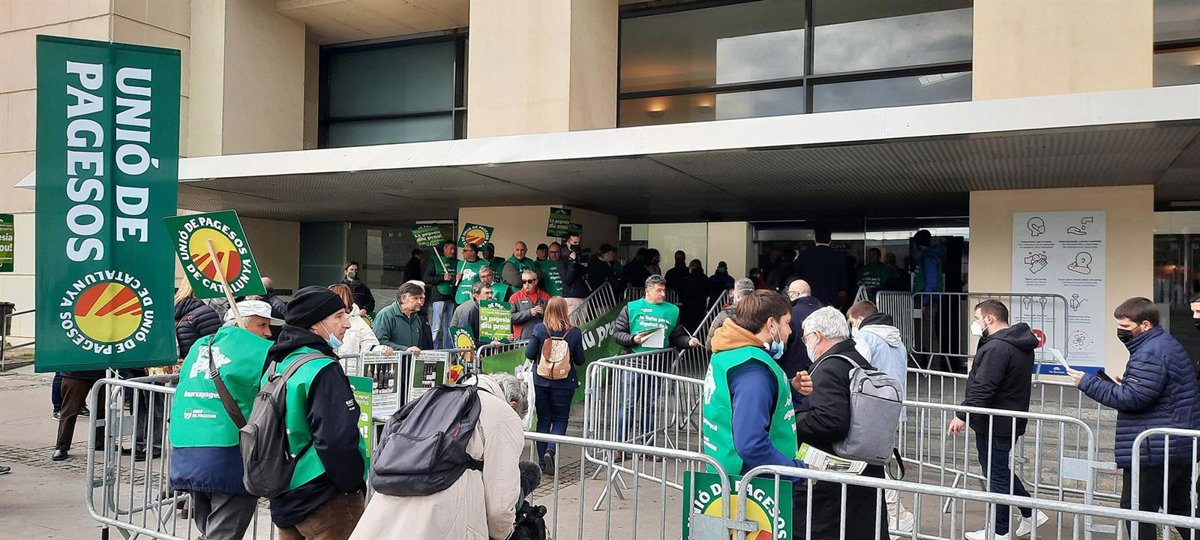 Unió de Pagesos también ha aprovechado la inauguración del salón Barcelona Wine Week en el recinto Montjuc de Fira de Barcelona para protestar contra "los precios extremadamente bajos de la uva y el vino".
