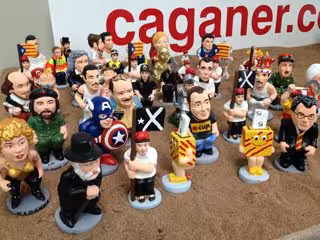 La urna para la consulta del 9N, el diputado de la CUP David Fernández y la Grossa de Cap d'Any son algunos de los 40 nuevos 'caganers' que la empresa caganer.com ha elaborado para vender estas Navidades.
