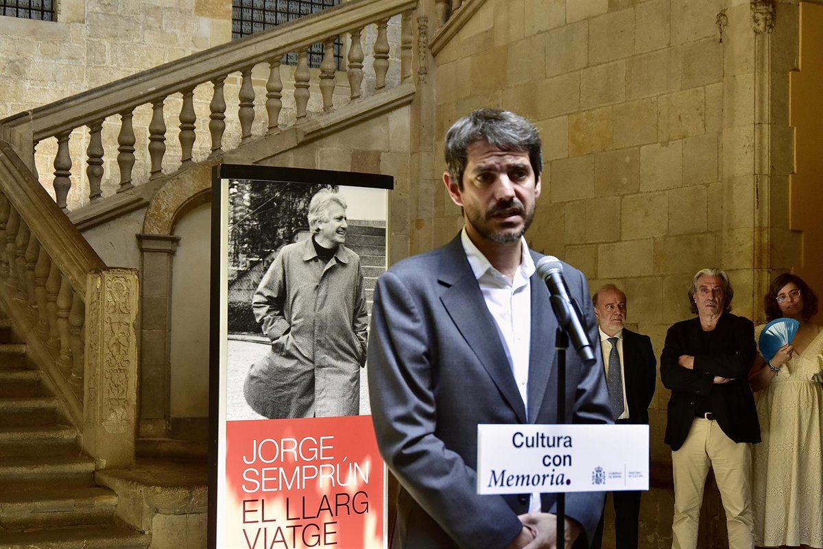 El ministro de Cultura, Ernest Urtasun, interviene durante la inauguración de la exposición Jorge Semprún. El largo viaje, en el Archivo de la Corona de Aragón, a 12 de julio de 2024, en Barcelona, Catalunya (España). La exposición está organizada por - David Oller - Europa Press