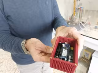 El investigador Eduard Llobet muestra un nodo desarrollado durante el proyecto - URV