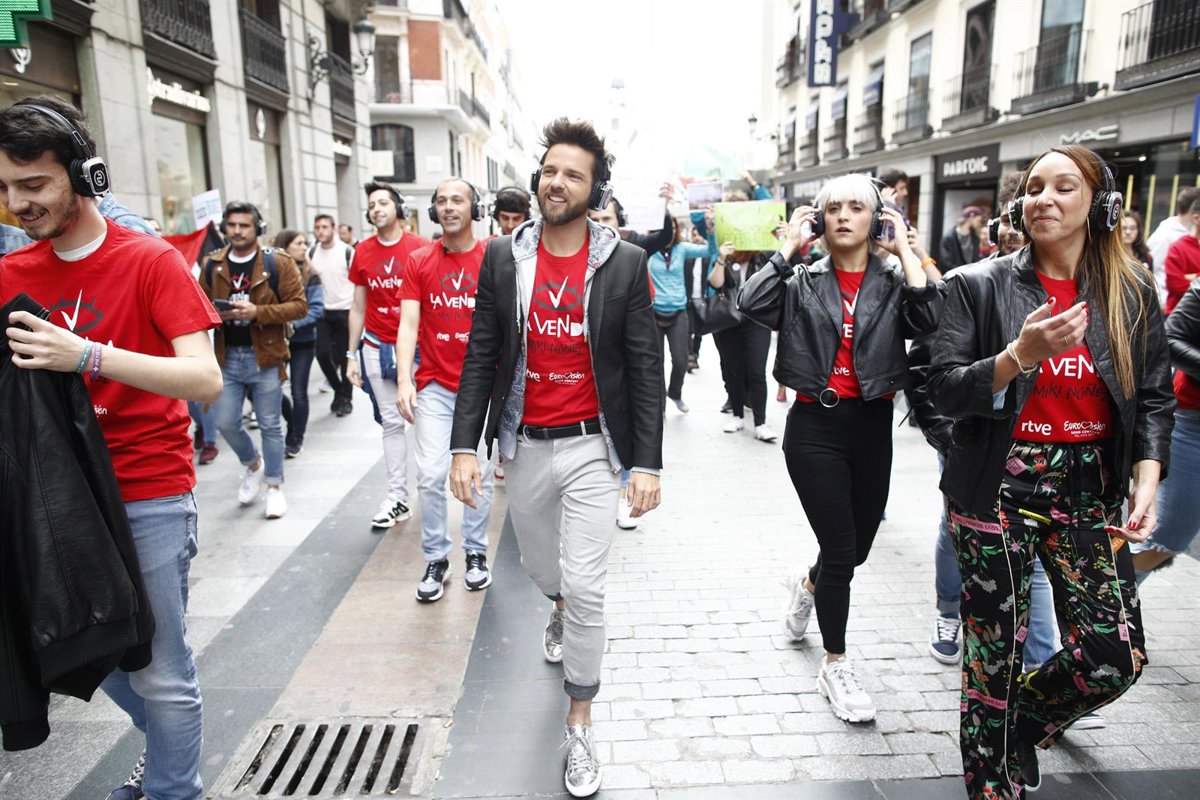 El candidato español para Eurovisión 2019, Miki Núñez, se despide antes de participar en la 64 edición del certamen europeo con una charanga junto a la estatua de Carlos III, en la Puerta del Sol. MIKI NÚÑEZ ; ;Eduardo Parra (archivo) - Eduardo Parra - Europa Press - Archivo