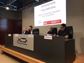 La presentación del proyecto de reforma de la Via Laietana 'Humanitzem Via Laietana', en el que han participado diez alumnos de la UPC, se ha presentado este jueves en el Colegio de Ingenieros Industriales de Catalunya, con sede en la misma avenida, ha recordado que el proyecto de reforma se inició en 2006 y aún no se ha cerrado.