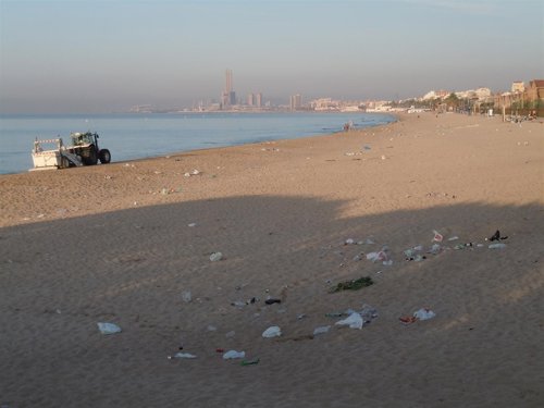 En la capital catalana, unas 70.000 personas han celebrado la verbenas en las playas de Barcelona, que a las 9.15 horas ya estaban limpias y abiertas al público.