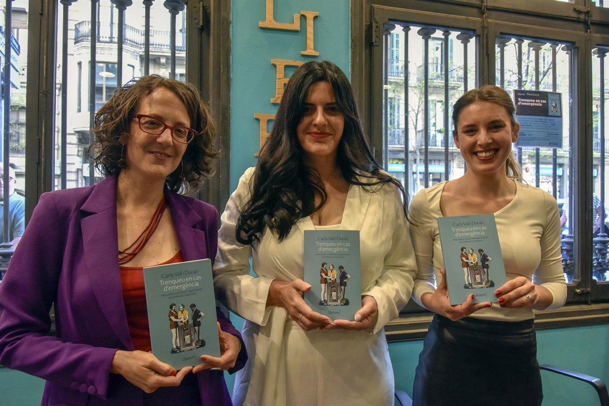 (I-D) La consellera de Igualdad y Feminismos, Tnia Verge, la abogada Carla Vall, y la ministra de Igualdad, Irene Montero, durante la presentación del libro Trenqueu en cas demergncia , en la librería Alibri, a 22 de abril de 2023, en Barcelona. - David Oller - Europa Press