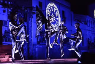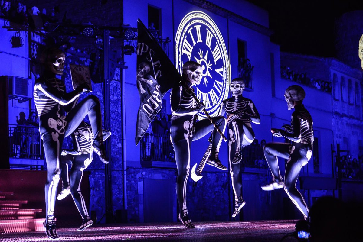 Esqueletos y túnicas negras recorren las calles del pueblo después de recrearse escenas de la Pasión