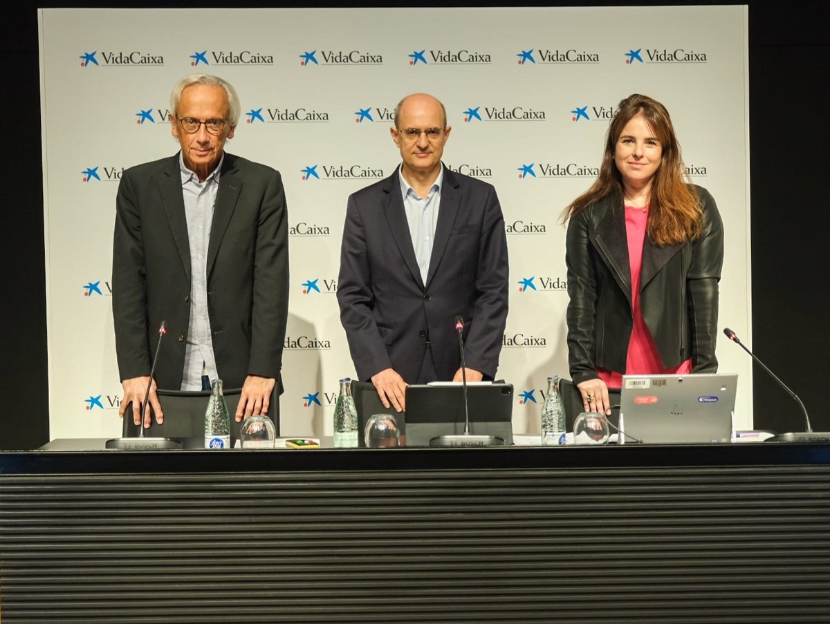 El director de Irsi Caixa Bonaventura Clotet, el consejero director general de VidaCaixa Javier Valle y la directora de comunicación, marca y RSC de VidaCaixa Ana García - VIDACAIXA