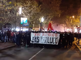 Bajo la pancarta 'Prou Repressió. Sas Absolució', unas 300 personas han avanzado hacia la comisaría de los Mossos del municipio, mientras gritaban consignas contra la policía y lemas como 'Aquí están las antifascistas'.