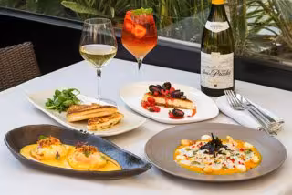 Todo ello se complementa con zumos de frutas naturales y cócteles vigorizantes, además de una extensa carta de vinos con más de un centenar de referencias, la mayoría disponibles a copas, de vinos elaborados por la Familia Torres en España, Chile y California, y por otras bodegas familiares de prestigio como las integrantes de las Primum Familiae Vini.