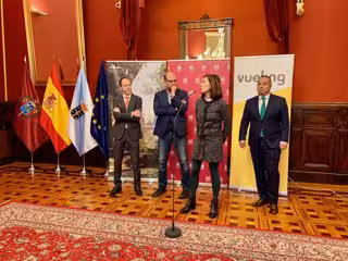 La presentación de la aeronave ha tenido lugar este miércoles en el Ayuntamiento de Santiago de Compostela, en un acto que ha contado con la presencia del director de 'network' de Vueling, Manuel Ambriz, y el alcalde de la ciudad, Martiño Noriega.