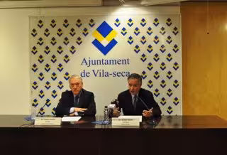 En rueda de prensa en el Ayuntamiento de Vila-seca (Tarragona), el presidente de la Fundación Gresol, Julián Mollá, y el alcalde de Vila-seca, Josep Poblet, han presentado un programa que prevé la inauguración por parte del presidente de la Generalitat, Carles Puigdemont.