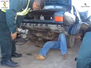 Por ello, al intuir que se trataba de un doble fondo, se procedió a cortarlas y así llegar hasta el lugar donde debía ubicarse el depósito de combustible que había sido quitado y modificado para introducir en el interior a una persona. Al finalizar la operación localizaron a una persona en situación fetal, que tuvo que ser fue rescatada y auxiliada a salir del lugar.