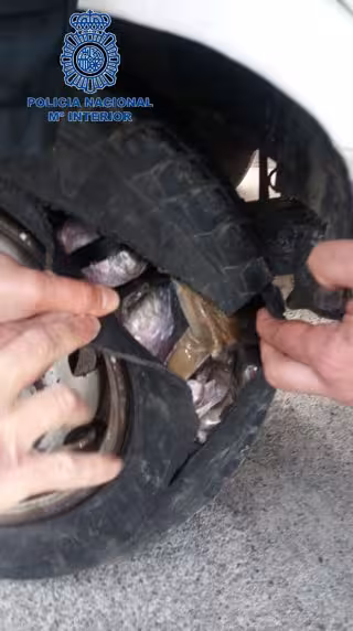 Agentes de la Policía Nacional destacados en el acceso a Ceuta por la frontera del Tarajal han localizado 16,8 kilogramos de hachís que un individuo llevaba ocultos en dos ruedas del turismo con matrícula marroquí con el que se saltó el control antes de chocar con un bordillo "a escasos metros", momento en el que rompió una cubierta y esparció varias placas de drogas por el suelo.