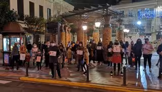 La protesta, que tuvo lugar la noche del sábado, antes del toque de queda de las 23,00 horas, congregó a estas personas que portaban carteles reivindicativos, varios de ellos con el símbolo de la cruz. Los manifestantes se colocaron de cara a la Iglesia del Sagrado Corazón y de espaldas al expositor 'Luces Interculturales".