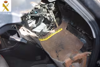 Por el mismo procedimiento se realizó la inspección en la zona del maletero advirtiendo también allí una leve modificación que les hizo supervisar los bajos y asiento trasero. Al apreciar el conductor el reconocimiento del vehículo que efectuaba la Guardia Civil, al tiempo que se le indagaba "si tenía algo que declarar", alegó a los agentes "que sí, que portaba una china de hachís", sacándosela de los bolsillos y mostrándola con nerviosismo, considerando que con ello podría desviar su atención y darse por satisfechos.