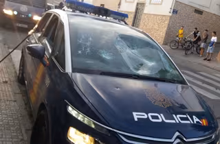 Un coche de la Policía Nacional de Melilla ha sido literalmente destrozado en la Cañada de Hidum, cuando acudió a atender una llamada de teléfono en la zona de las viviendas de protección oficial y fue recibido a pedradas por desconocidos e incluso a tiros según testigos, aunque este extremo no ha sido confirmado oficialmente.