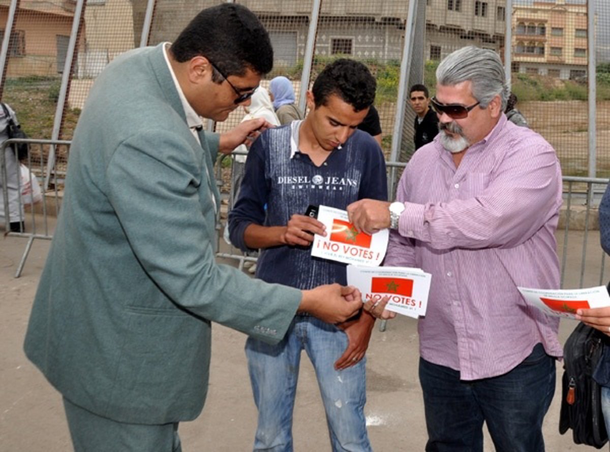 El arrestado es un joven marroquí que fue detenido lunes por la tarde cuando, junto otros compatriotas que lograron escapar, repartía panfletos en los que solicitan a melillenses y ceutíes que no voten en los comicios autonómicos en ambas ciudades "porque todos los partidos que se presentan son iguales", dentro de la campaña que realiza el grupo de organizaciones políticas y sociales que integran dicho comité contra la españolidad de Ceuta y Melilla.