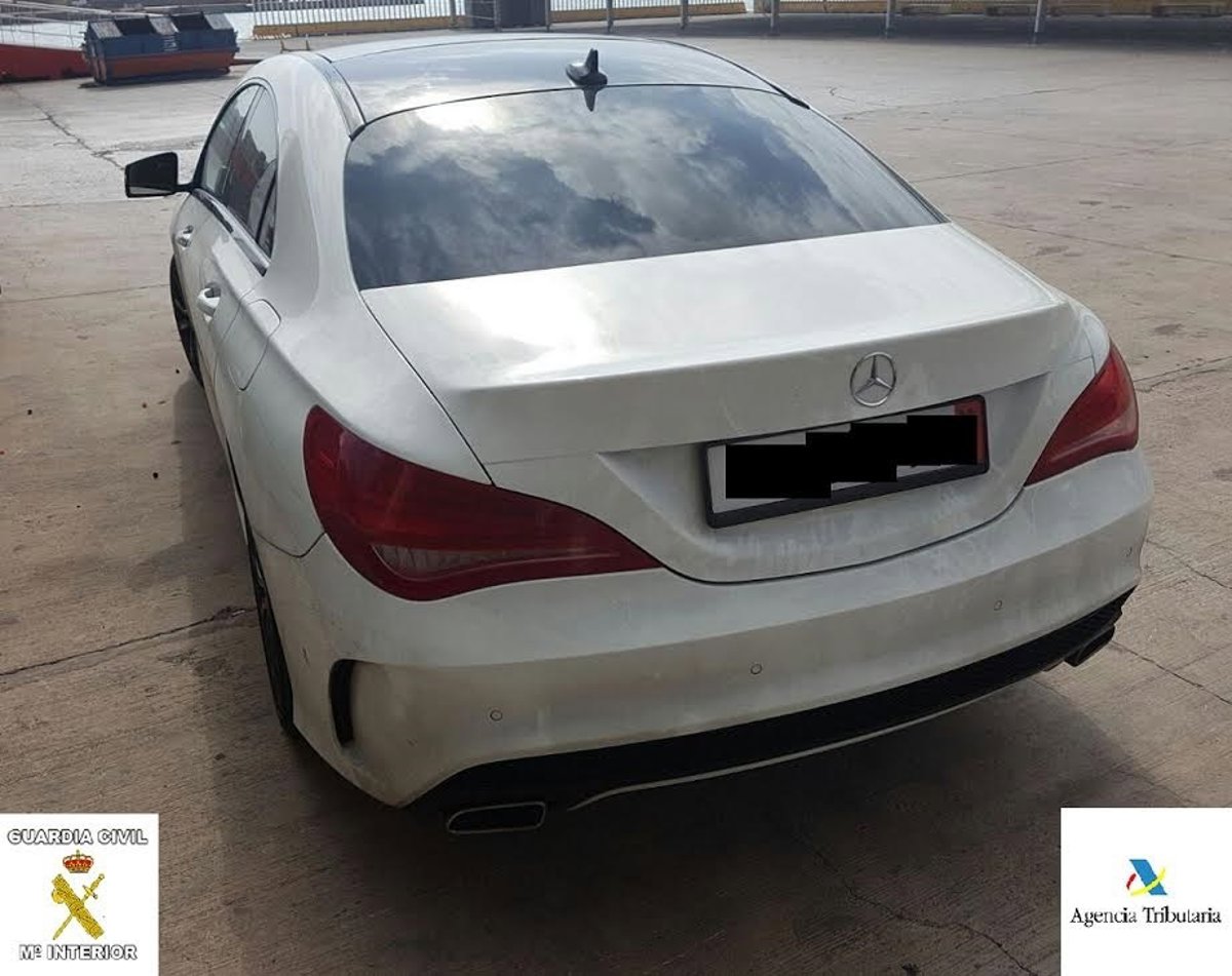 Según ha informado este viernes un portavoz de la Comandancia, la intervención se ha producido cuando los guardias civiles de la Sección Fiscal del Muelle, en su función de Resguardo Fiscal del Estado, procedían al control selectivo de vehículos que desembarcaban del buque procedente de Almería, cuando fue realizado sobre uno, marca Mercedes, modelo C220 CDI, de color blanco y placas alemanas.