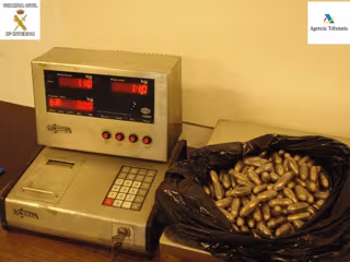 Tras practicársele una "radiografía abdominal", en un lugar habilitado por los Servicios de Aduanas, la inspección dio como resultado la localización de un indeterminado número de "bellotas" en el interior del estómago.